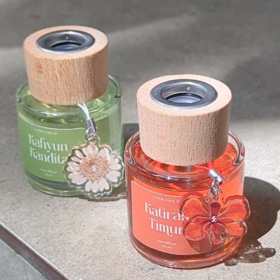 Berangkat dari hobi membuat kerajinan tangan pressed flower dari bunga yang ada di halaman rumah, Liyer Liyer menambahkan pressed flower ke dalam produk pengharum ruangan, menghasilkan herbarium scented candle berbahan organik non-paraffin (palm wax) sebagai produk utamanya. Sebuah kombinasi pressed flower dengan scented candle berbahan organik pasti memberikan pengalaman sensorik yang menenangkan sekaligus estetis. Liyer Liyer mengutamakan konsep keberlanjutan dan mengusung gagasan thoughtful gift, yang tercermin tidak hanya dalam penggunaan bahan organik dan kemasan kertas bebas plastik, tetapi juga dalam kepraktisan produknya sebagai hadiah, baik untuk orang lain maupun diri sendiri.